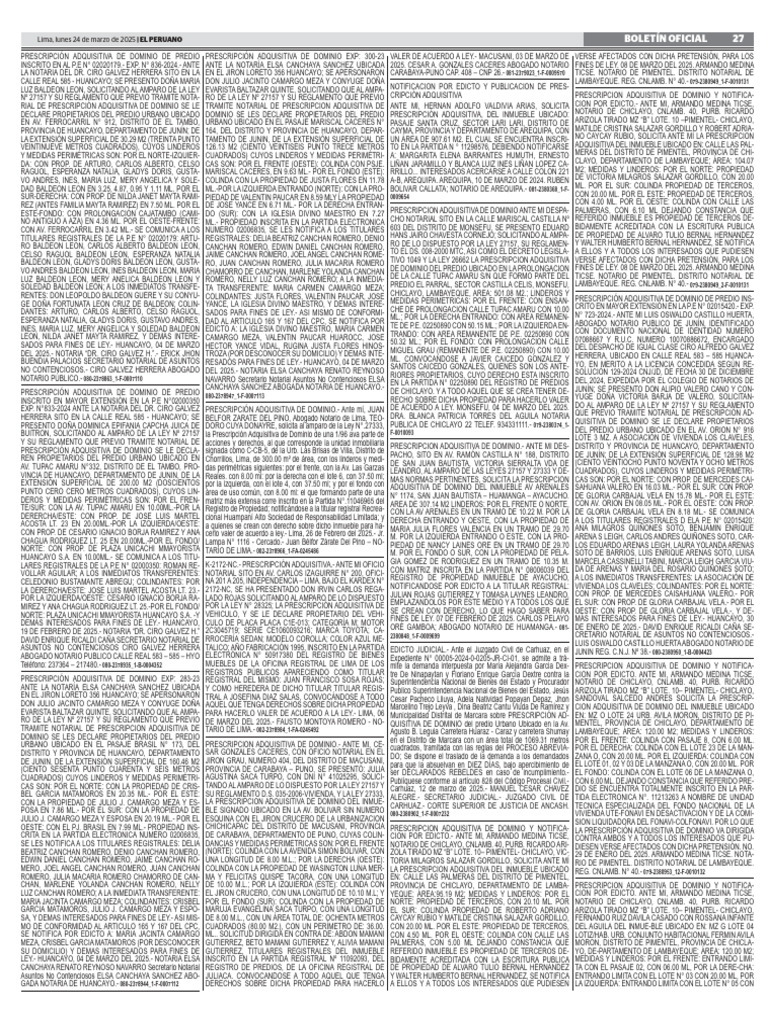 Lima, lunes 24 de marzo de 2025 | EL PERUANO BOLETÍN OFICIAL 27