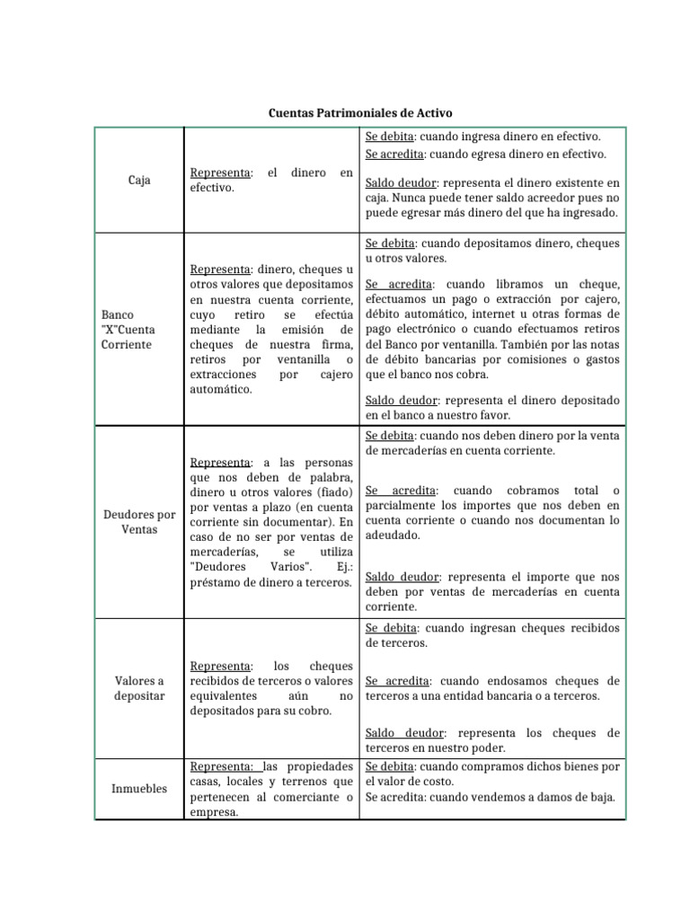 Representa: las propiedades Se debita: cuando compramos dichos bienes por