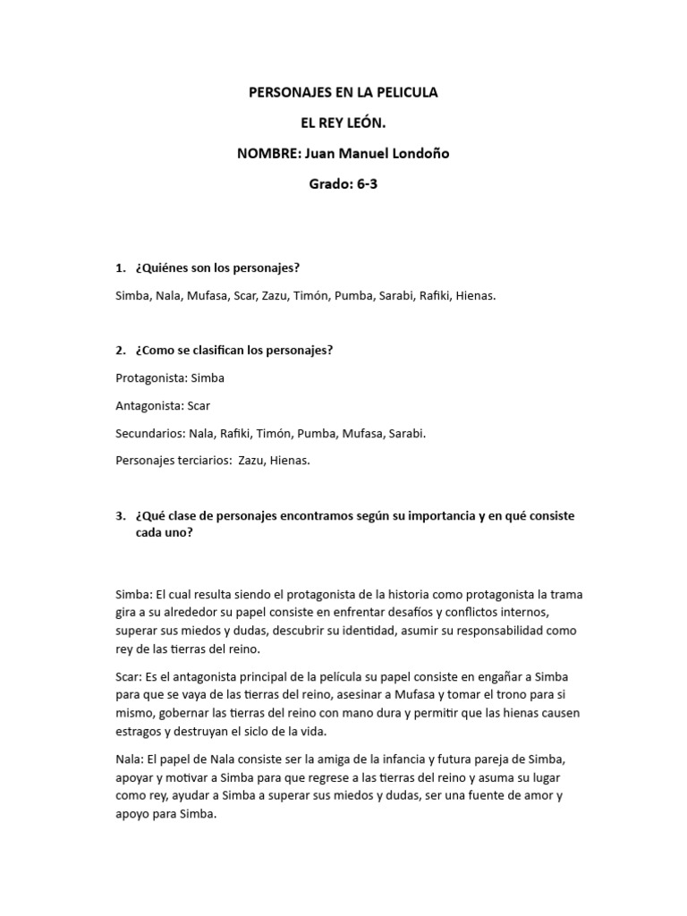 Simba: El cual resulta siendo el protagonista de la historia como protagonista la trama