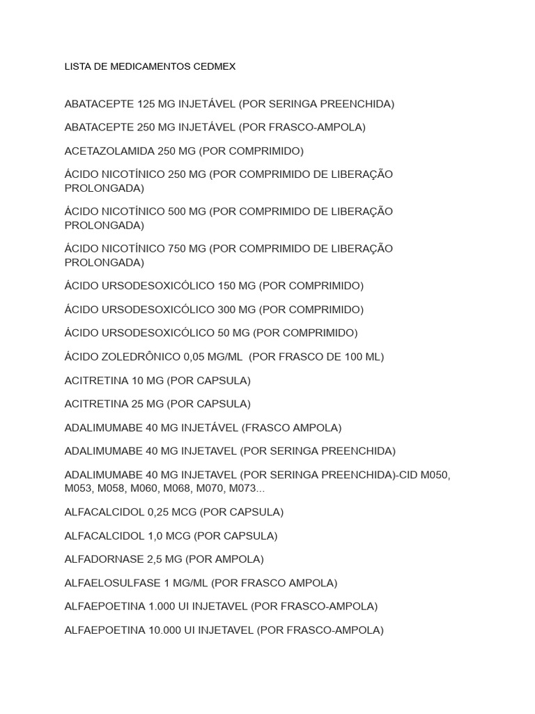 LISTA DE MEDICAMENTOS CEDMEX