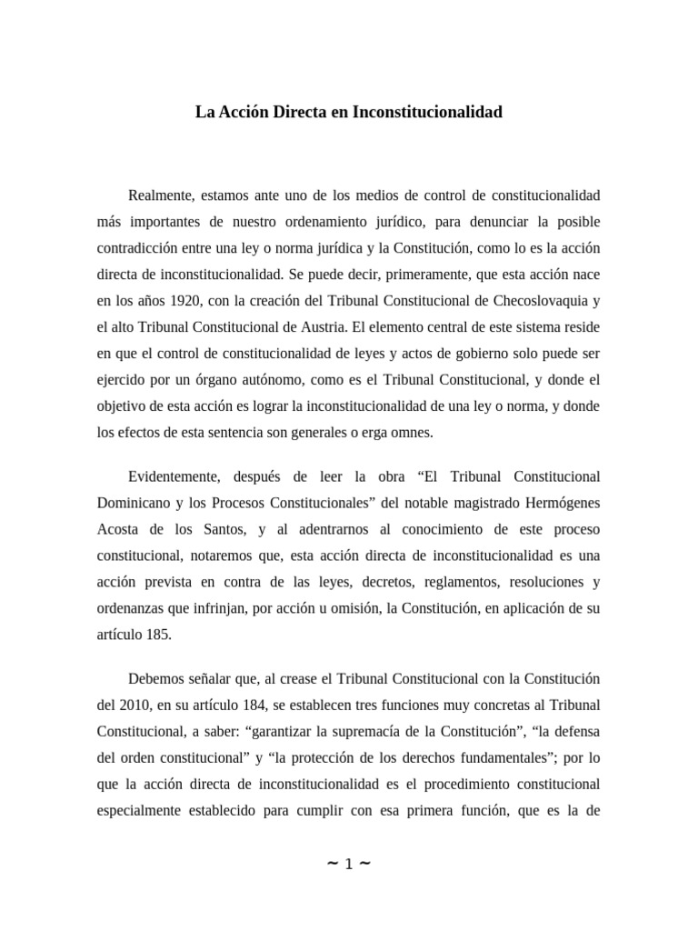 La Acción Directa en Inconstitucionalidad