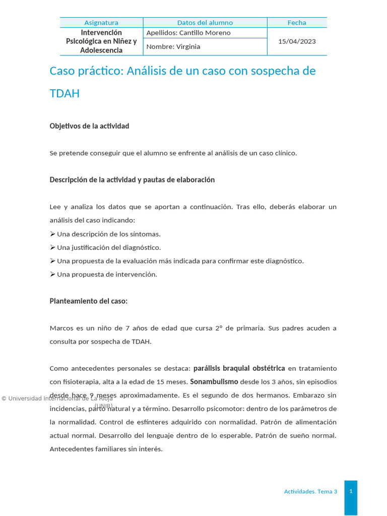diferencial con el fin de comprobar por qué no es otro trastorno y si es TDAH. Primero,
