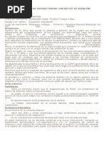 frecuentemente de actividad. Comenta que le cuesta mucho trabajo estudiar y que le