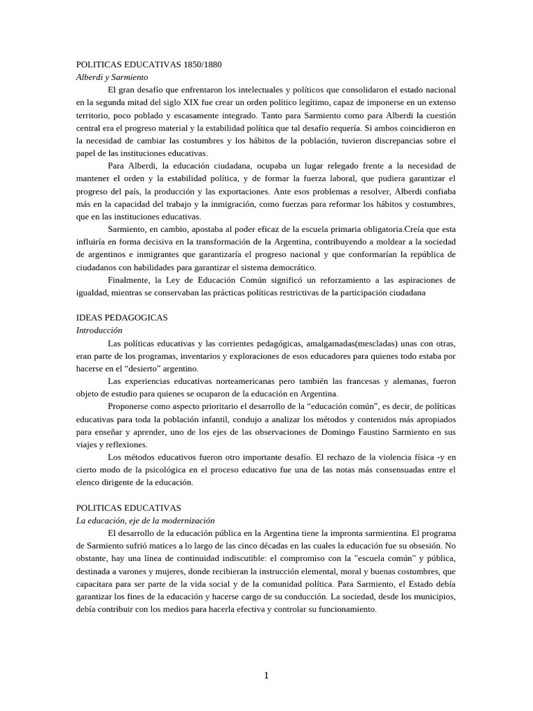 POLITICAS EDUCATIVAS 1850/1880