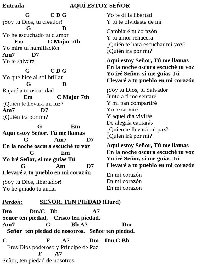 En la noche oscura escuché tu voz Aquí estoy Señor, Tú me llamas
