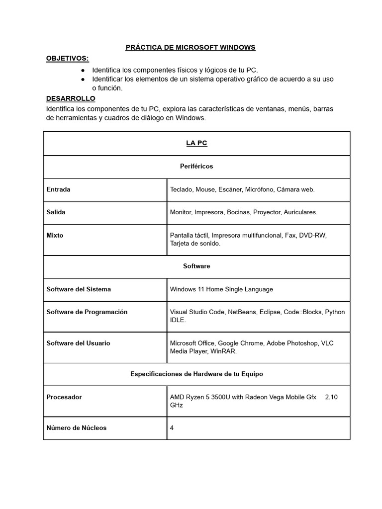 Identifica los componentes de tu PC, explora las características de ventanas, menús, barras