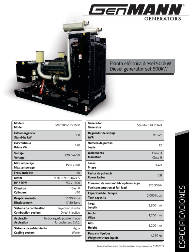 Cilindros 10 en V Fuel consumption at full load ESPECIFICACIONES