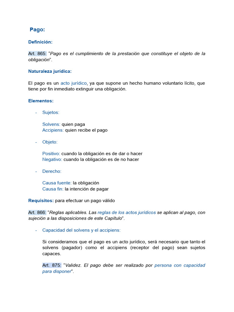Art. 865: “Pago es el cumplimiento de la prestación que constituye el objeto de la