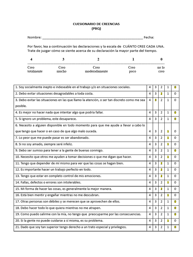 CUESIONARIO DE CREENCIAS