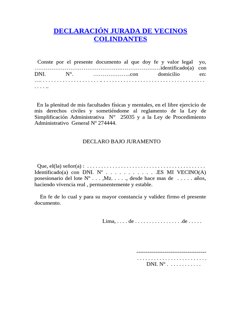 DECLARACIÓN JURADA DE VECINOS