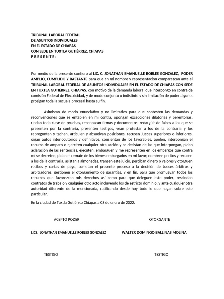 Por medio de la presente confiero al LIC. C. JONATHAN EMANUELLE ROBLES GONZALEZ, PODER