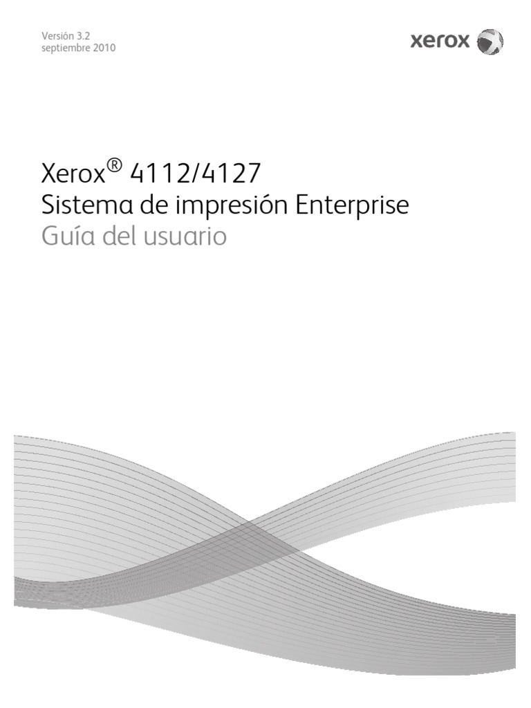 2010 Xerox Corporation. Reservados todos los derechos. Xerox, lo competente al diseo de conectividad y al sistema de impresin Xerox 4112/4127 Enterprise son marcas registradas de Xerox Corporation en los Estados Unidos o en otros otros pases. Microsoft, MS-DOS, Windows, Microsoft Network y Windows Server son marcas comerciales o marcas registradas de Microsoft Corporation en los Estados Unidos y (o) en otros pases. Novell, NetWare, IntranetWare y NDS son marcas registradas de Novell, Inc. en los Estados Unidos y en otros pases. Adobe, Acrobat, PostScript, PostScript3 y el logotipo PostScript son marcas comerciales de Adobe Systems Incorporated. Apple, AppleTalk, EtherTalk, LocalTalk, Macintosh, MacOS y TrueType son marcas registradas de Apple Computer, Inc. en los Estados Unidos y en otros pases. HP, HPGL, HPGL/2 y HP-UX son marcas registradas de Hewlett-Packard Corporation. Este documento se ver sujeto peridicamente a cambios. En las siguientes ediciones se corregirn cambios, imprecisiones tcnicas y errores tipogrficos.