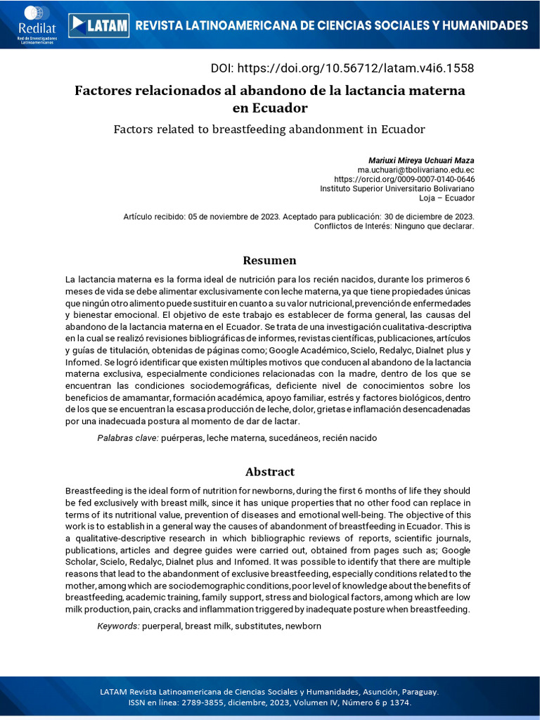 Tigasi, P., & Arráiz, d. F. (2023). Factores que influyen en el abandono de la lactancia materna en
