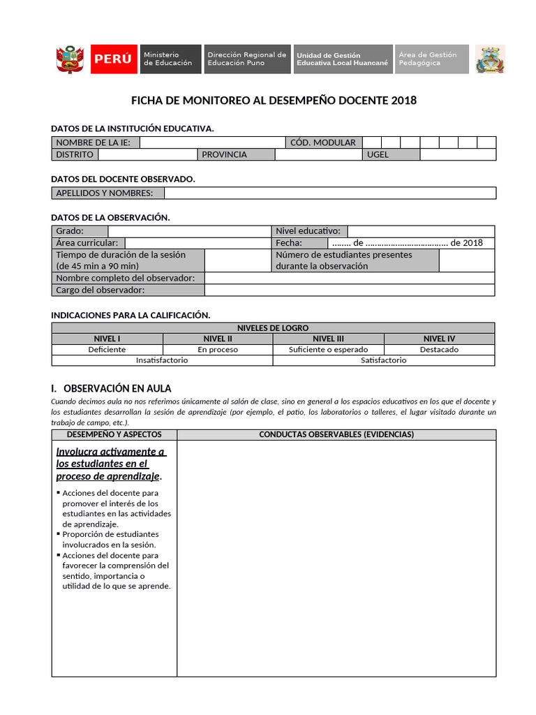 FICHA DE MONITOREO AL DESEMPEÑO DOCENTE 2018