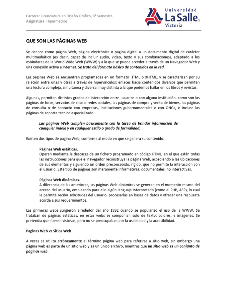 Las páginas Web se encuentran programadas en un formato HTML o XHTML, y se caracterizan por su