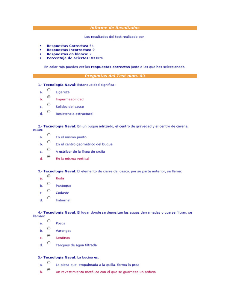 En color rojo puedes ver las respuestas correctas junto a las que has seleccionado.