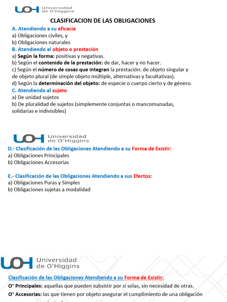 D.- Clasificación de las Obligaciones Atendiendo a su Forma de Existir: