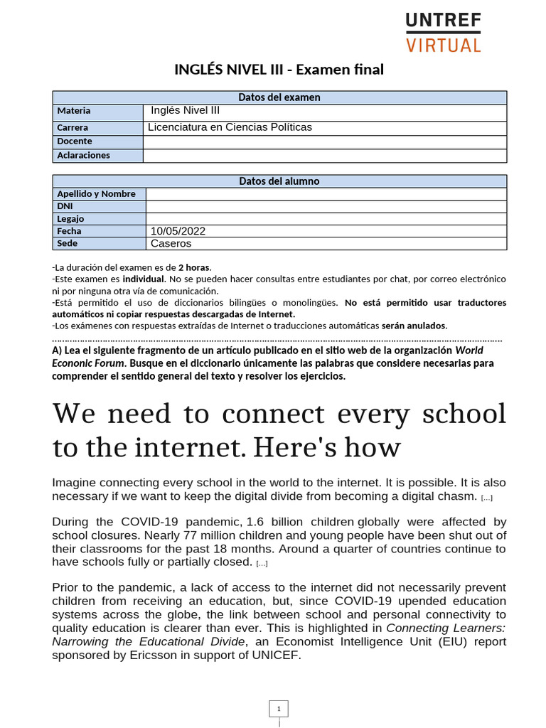 -Los exámenes con respuestas extraídas de Internet o traducciones automáticas serán anulados.