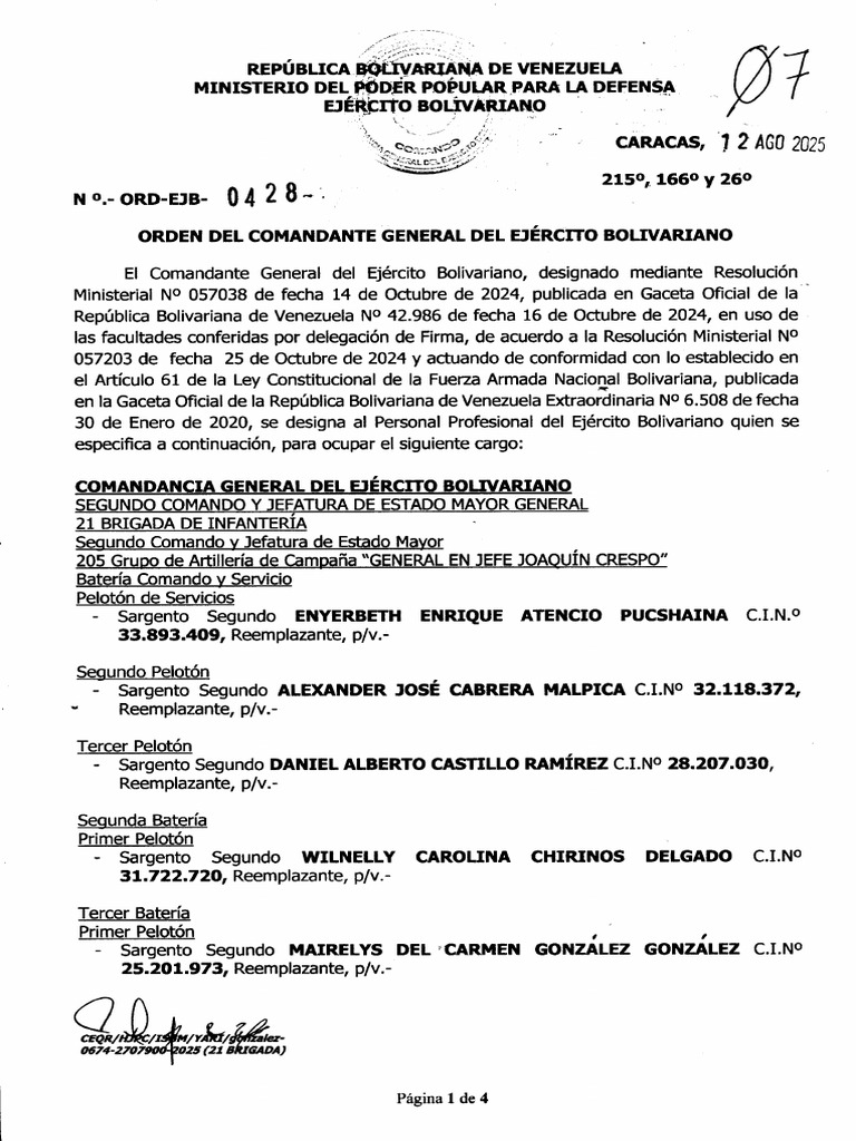 ORDEN DEL COMANDANTE GENERAL DEL EJERCITO BOLIVARIANO