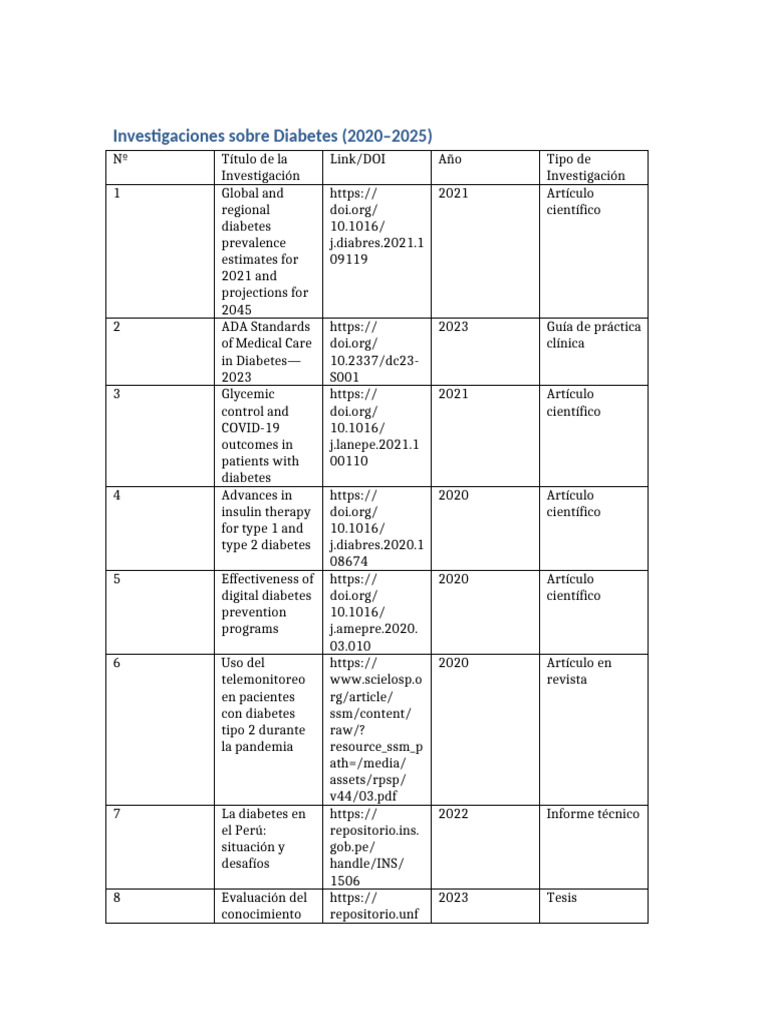 Investigaciones sobre Diabetes (2020–2025)
