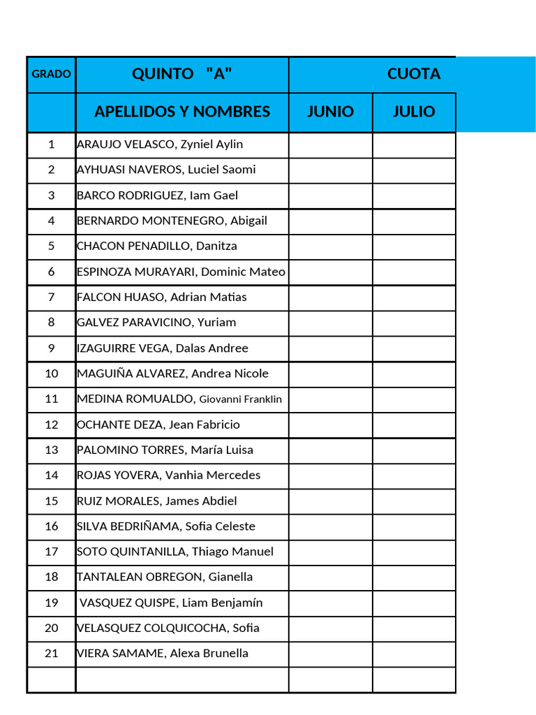GRADO QUINTO "A" CUOTA