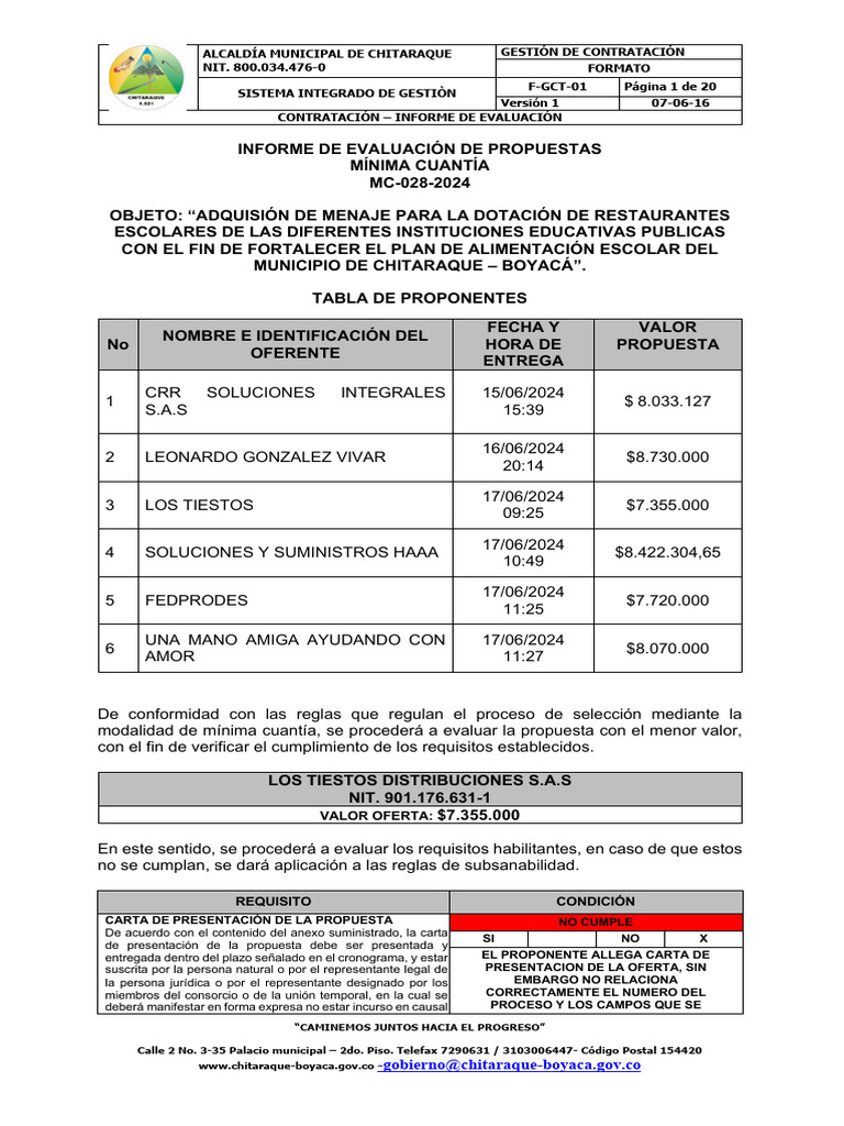 CARTA DE PRESENTACIÓN DE LA PROPUESTA NO CUMPLE