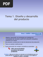 INTRODUCCIN El diseo y la innovacin son instrumentos indispensables para el xito y el crecimiento de las empresas, aportan factores de racionalidad, calidad y modernidad a los productos y pueden incluso llegar a mejorar la calidad de vida de las personas. Saber interpretar correctamente las necesidades de los clientes es fundamental para disear productos que tengan xito en el mercado. Cabe destacar, que el proceso de diseo y desarrollo puede surgir como consecuencia de una oportunidad de negocio detectada por algn miembro de la organizacin, a travs de estudios de mercado, u otros, o bien de una necesidad identificada por la organizacin o por el cliente es decir, por requisitos especficos. Es importante destacar, que un buen diseo permite extraer el mximo rendimiento de la inversin, reducir los costes de explotacin y absorber una mayor cuota de mercado con un producto de ciclo de vida largo y de precio razonable. En el diseo de los procesos de produccin, se seleccionan y describen los procesos especficos que se utilizarn en produccin. La planeacin de los procesos es intensa para nuevos productos y servicios, pero tambin puede ocurrir un replanteamiento en la medida cambian las necesidades de capacidad o modifican las condiciones de la empresa. Para finalizar, se desarrollaran de manera amplia la descripcin de los pasos a seguir en el proceso de diseo y desarrollo de un producto, los factores principales que afectan las decisiones de diseo de los procesos y los tipos de diseos de procesos. De esta manera se podrn conocer todas las herramientas necesarias que permitan disear o replantear un producto que pueda satisfacer las necesidades tanto del cliente como de la empresa.