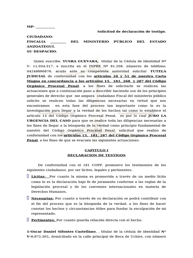 teléfono0424-8914877. Por considerar que su testimonio es útil y pertinente