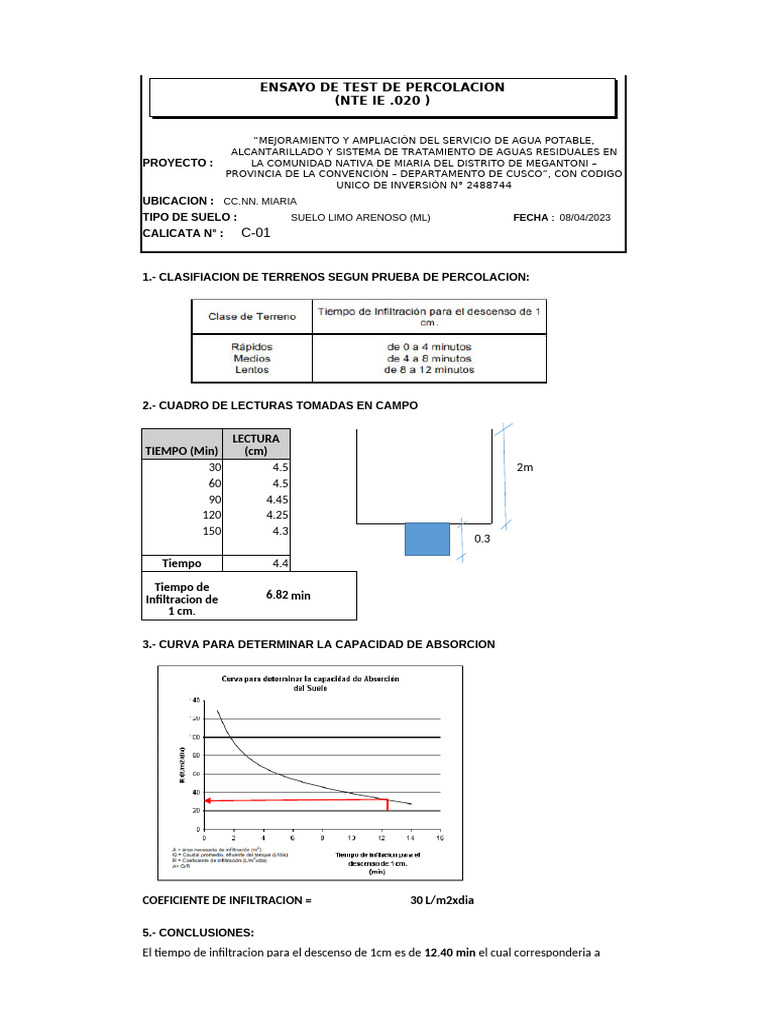 1.- CLASIFIACION DE TERRENOS SEGUN PRUEBA DE PERCOLACION: