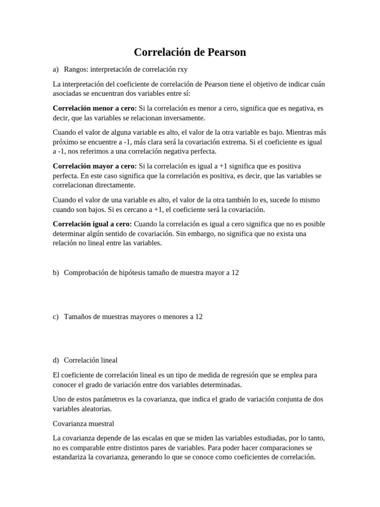 La interpretación del coeficiente de correlación de Pearson tiene el objetivo de indicar cuán
