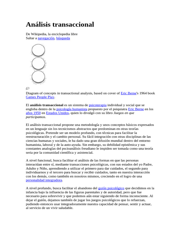 http://en.wikipedia.org/wiki/Games_People_Play_(book) ) El análisis transaccional es