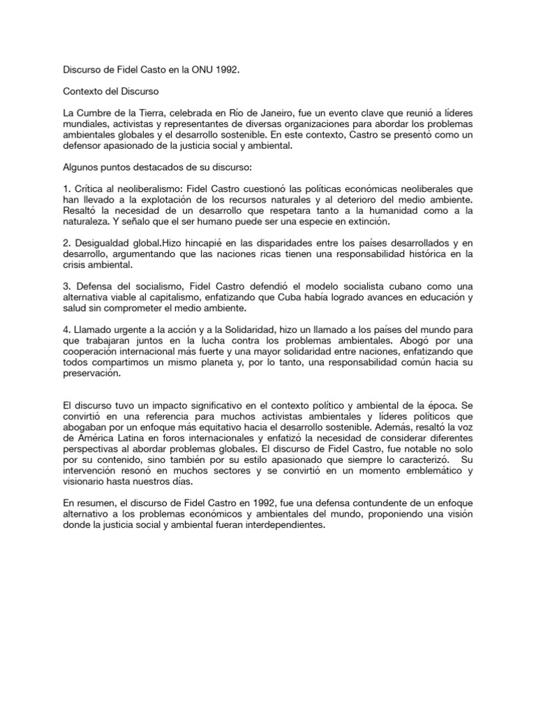 En resumen, el discurso de Fidel Castro en 1992, fue una defensa contundente de un enfoque