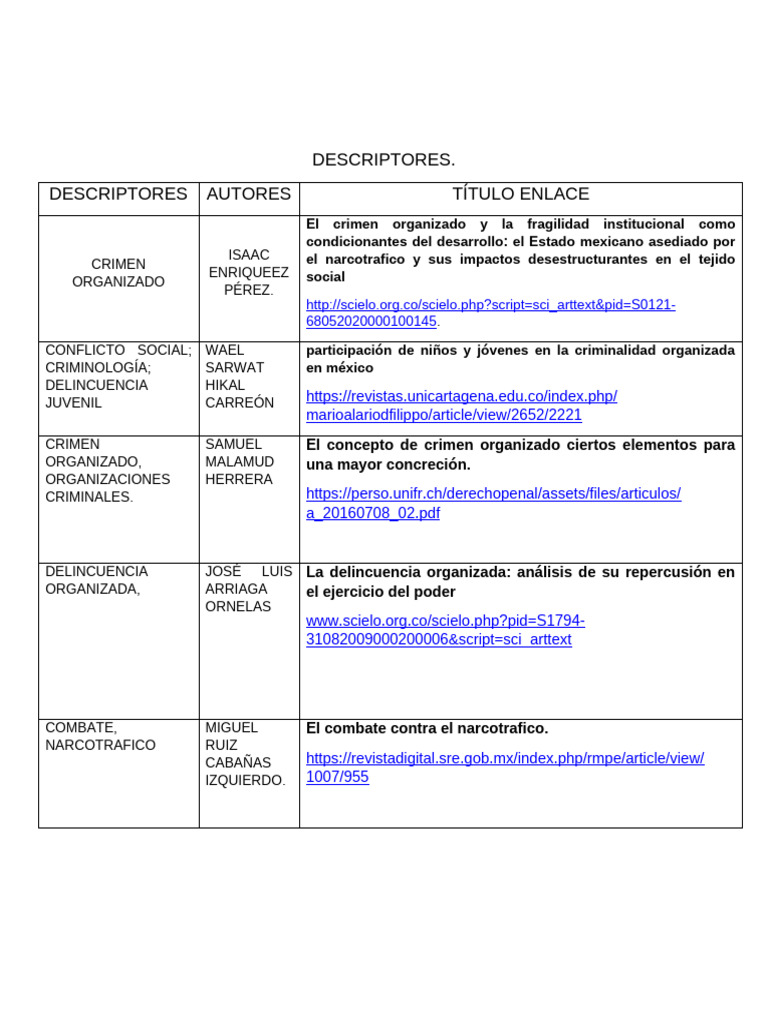 DESCRIPTORES AUTORES TÍTULO ENLACE