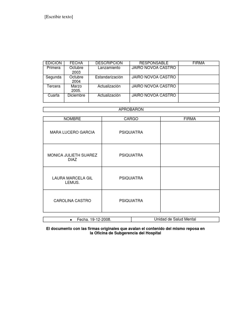 El documento con las firmas originales que avalan el contenido del mismo reposa en la Oficina de Subgerencia del Hospital