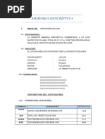 La presente Memoria Descriptiva, corresponde a la Ubicación y Localización de un Lote de