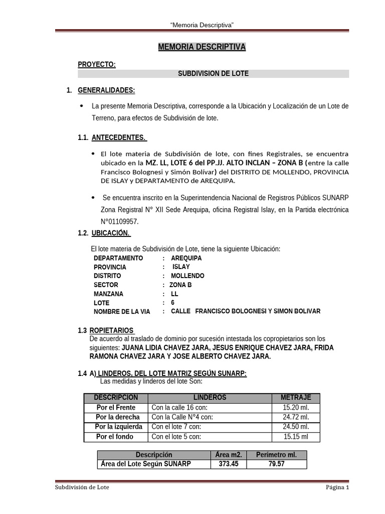 Subdivisión de Lote Página 1