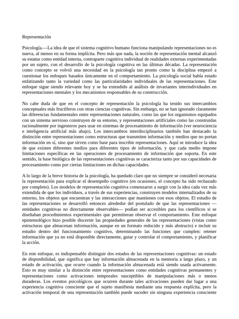 por un sujeto, con el desarrollo de la psicología cognitiva en las últimas décadas. La representación