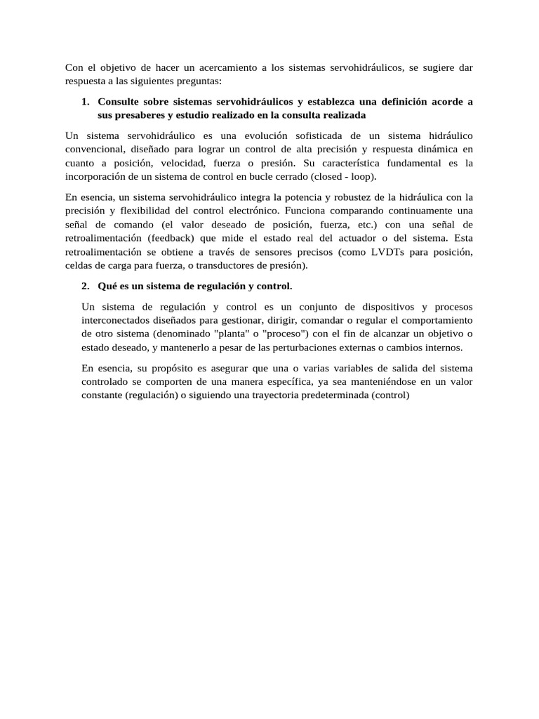 1. Consulte sobre sistemas servohidráulicos y establezca una definición acorde a