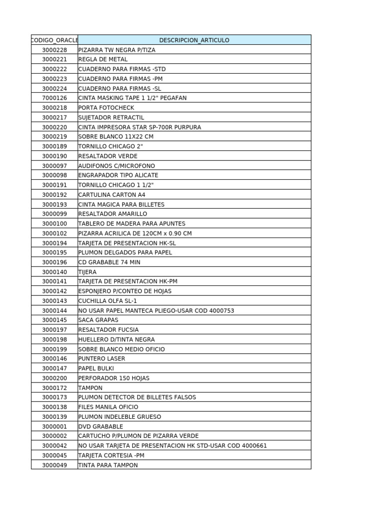 CODIGO_ORACLE DESCRIPCION_ARTICULO