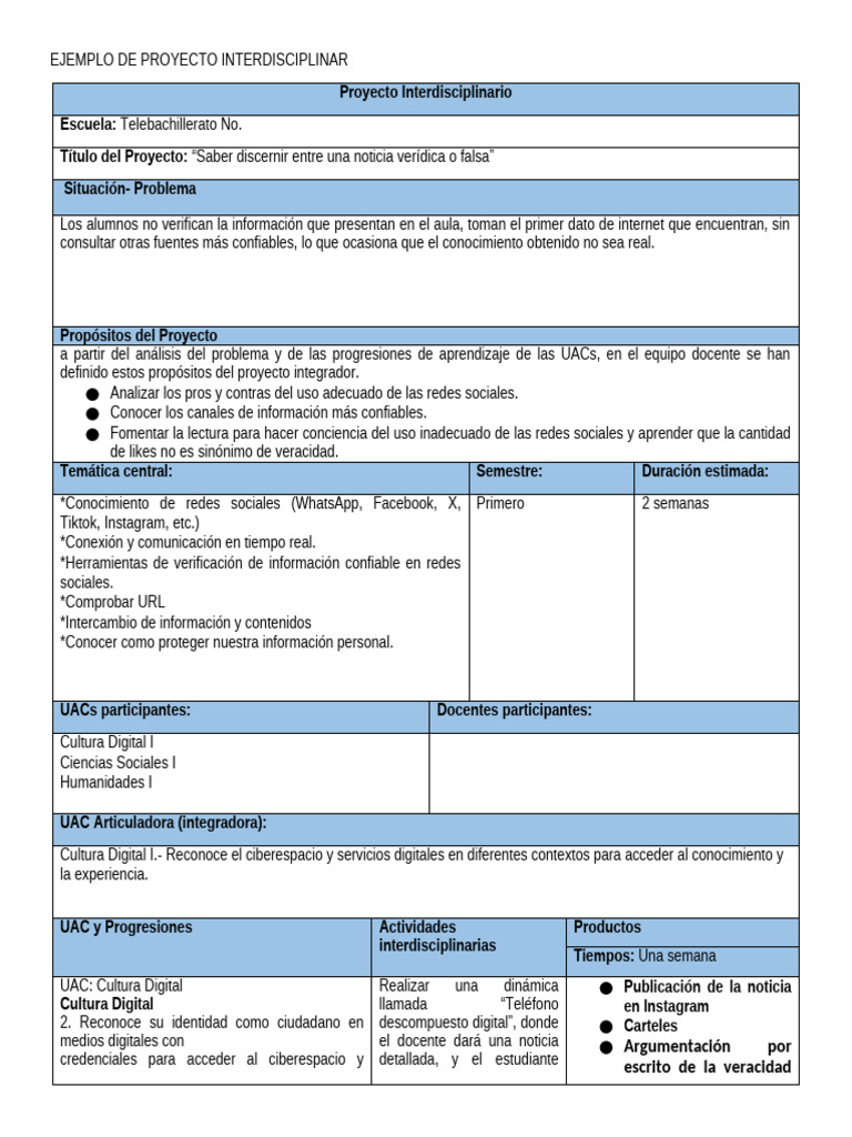 EJEMPLO DE PROYECTO INTERDISCIPLINAR