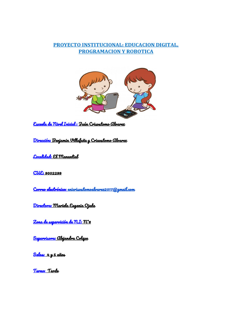 PROYECTO INSTITUCIONAL: EDUCACION DIGITAL,