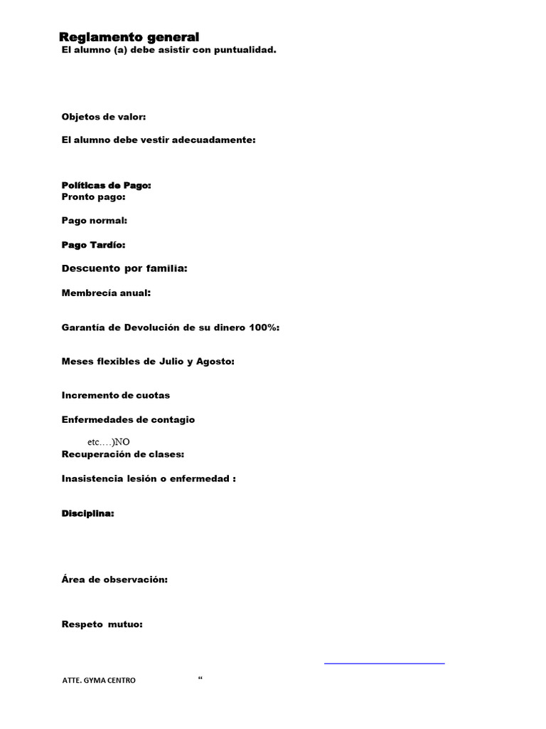 Objetos de valor: Le recomendamos NO traer objetos de valor a su clase, la academia no se hará responsable