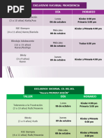 completa por adelantado indicándonos cuales semanas para apartar su lugar. Durante este periodo los horarios