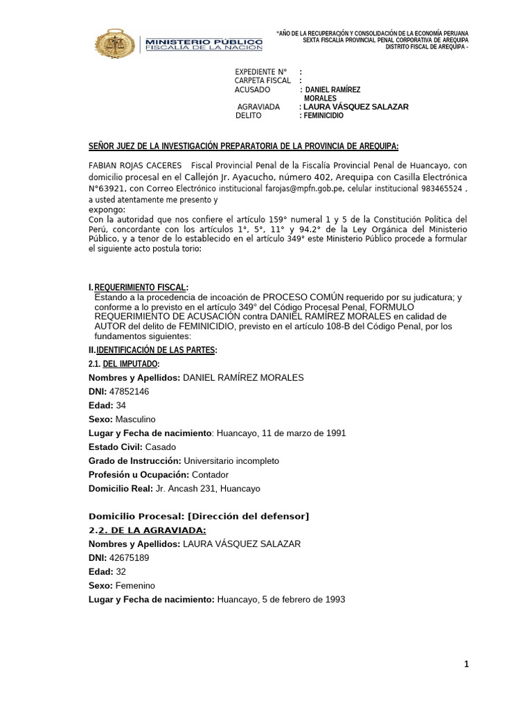REQUERIMIENTO DE ACUSACIÓN contra DANIEL RAMÍREZ MORALES en calidad de