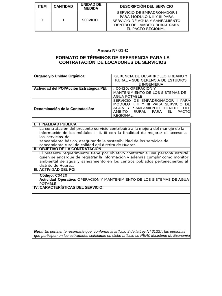 FORMATO DE TÉRMINOS DE REFERENCIA PARA LA