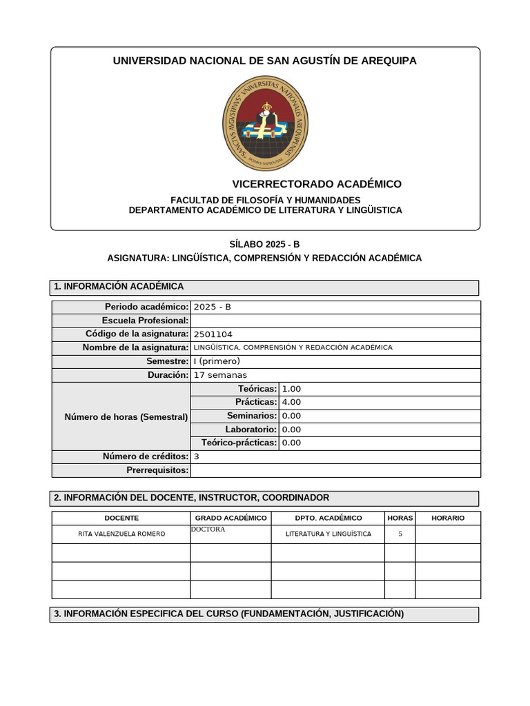 Nombre de la asignatura: LINGÜÍSTICA, COMPRENSIÓN Y REDACCIÓN ACADÉMICA