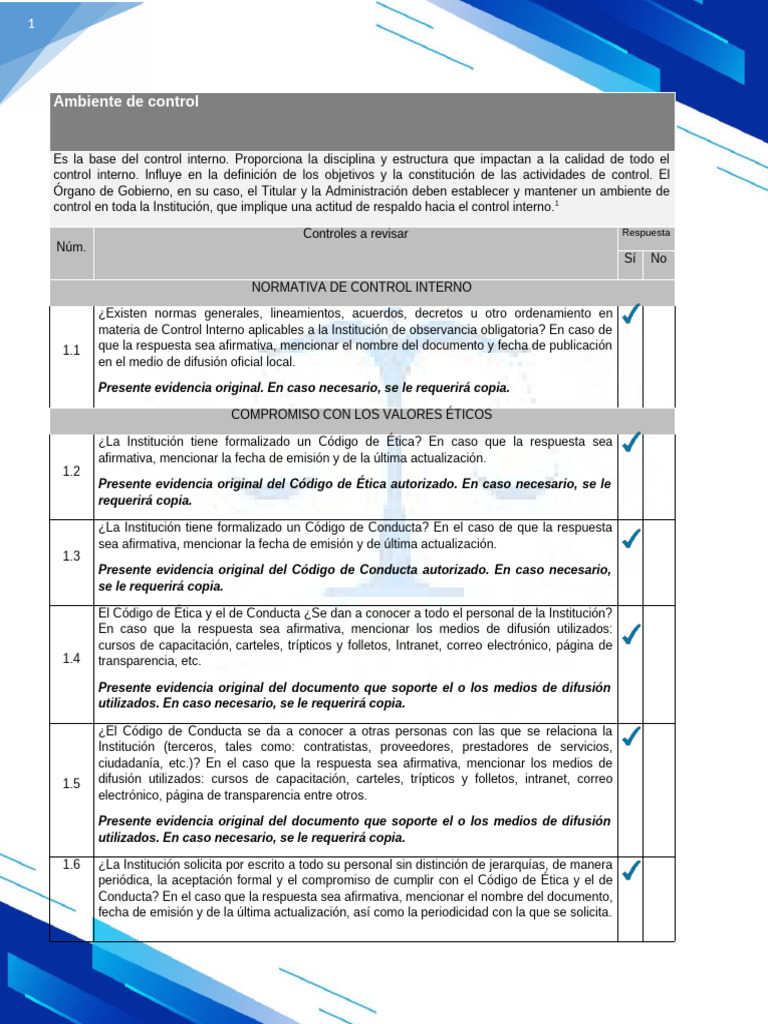 control en toda la Institución, que implique una actitud de respaldo hacia el control interno.1