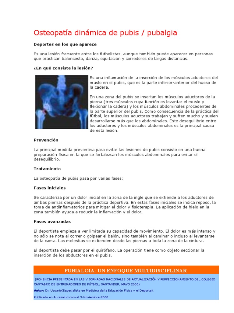 lesiones en el origen de los músculos adductores. Actualmente la prevalencia de esta lesión