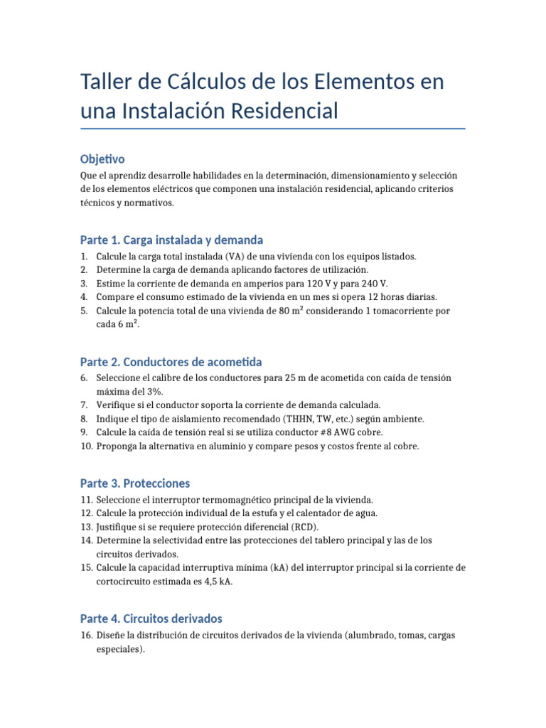 de los elementos eléctricos que componen una instalación residencial, aplicando criterios