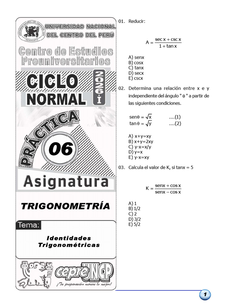 03. Calcula el valor de K, si tanx = 5